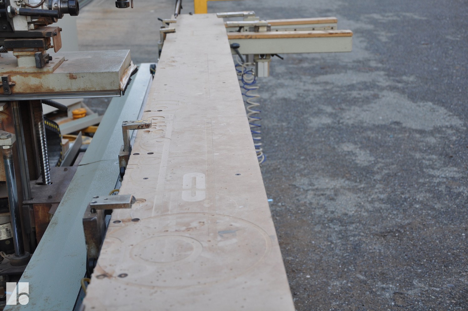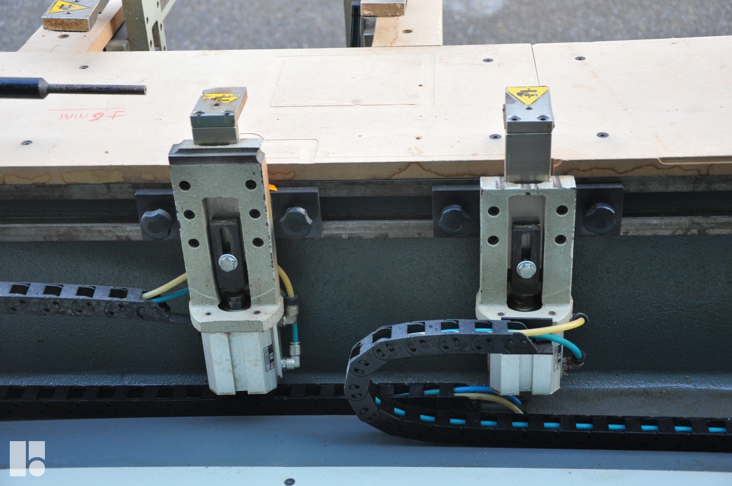 6 workpiece supports with rows of stops at the front and rear