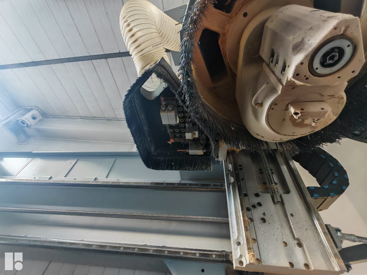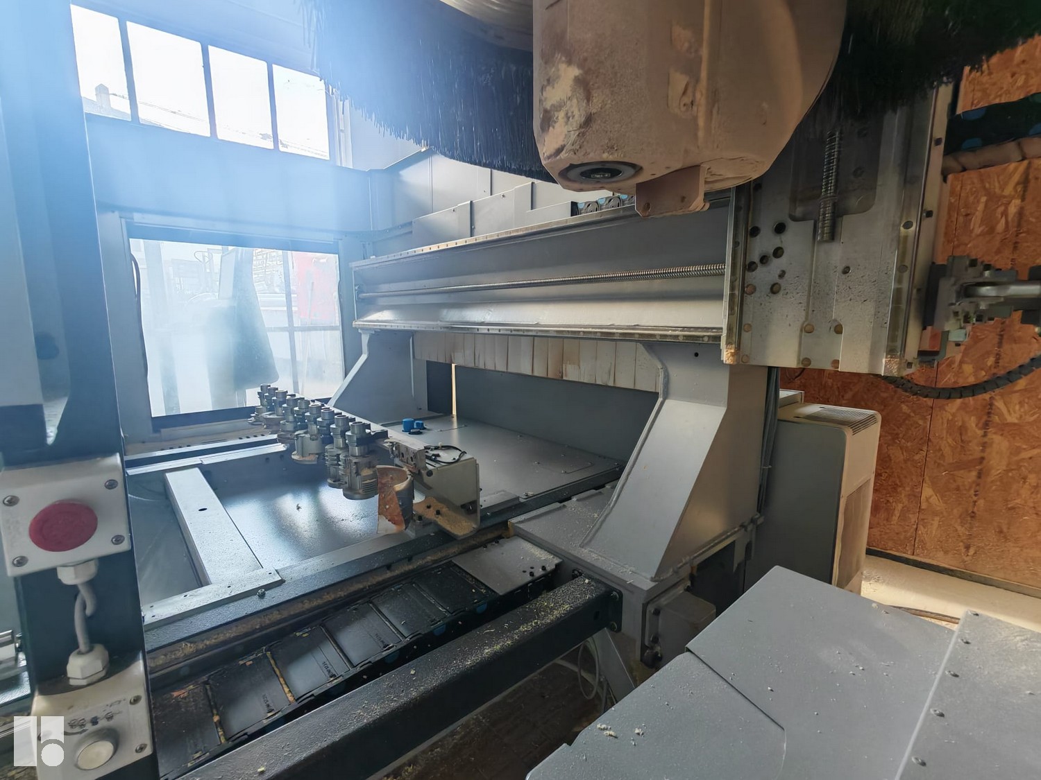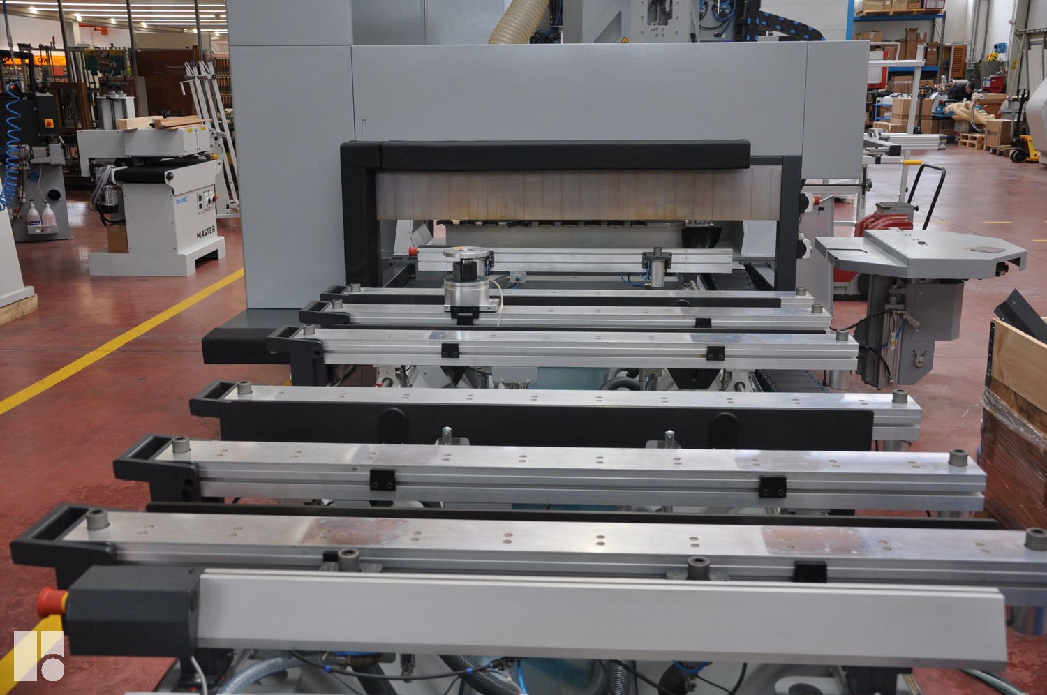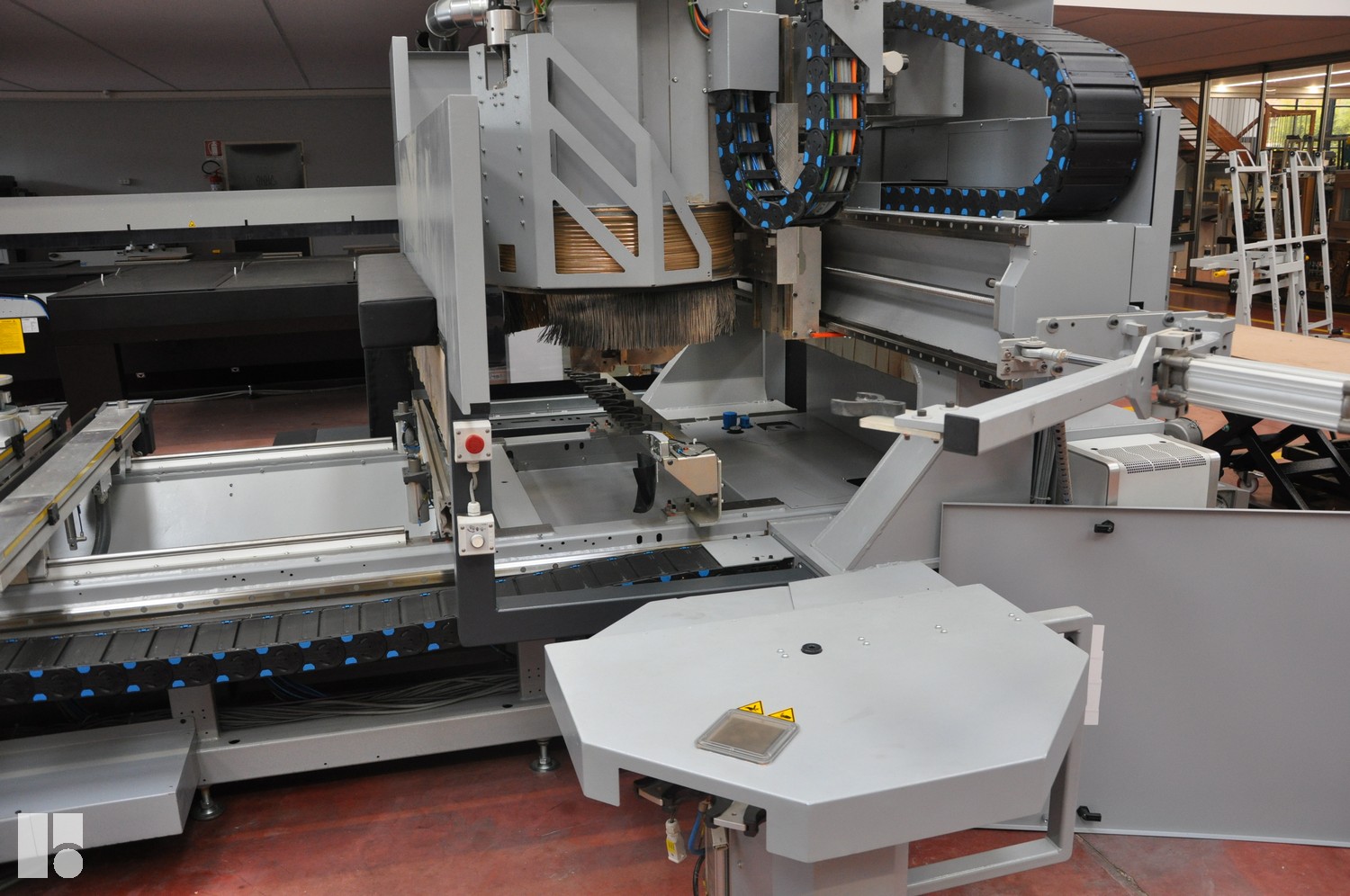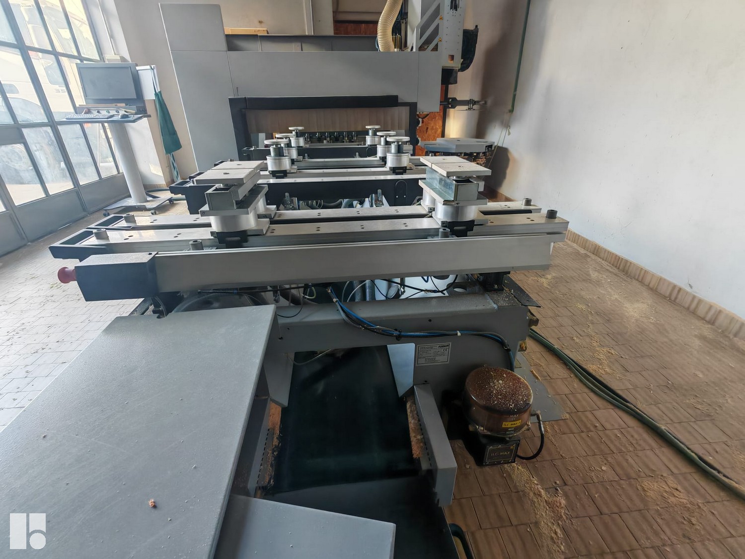 Centro di lavoro a controllo numerico per lavorazione serramenti in legno, completo di testa anubatrice e testa bedanatrice
