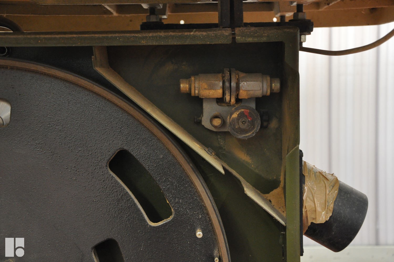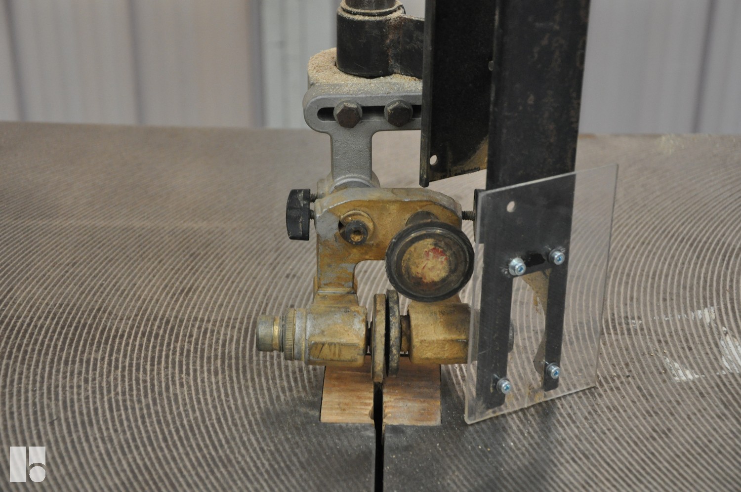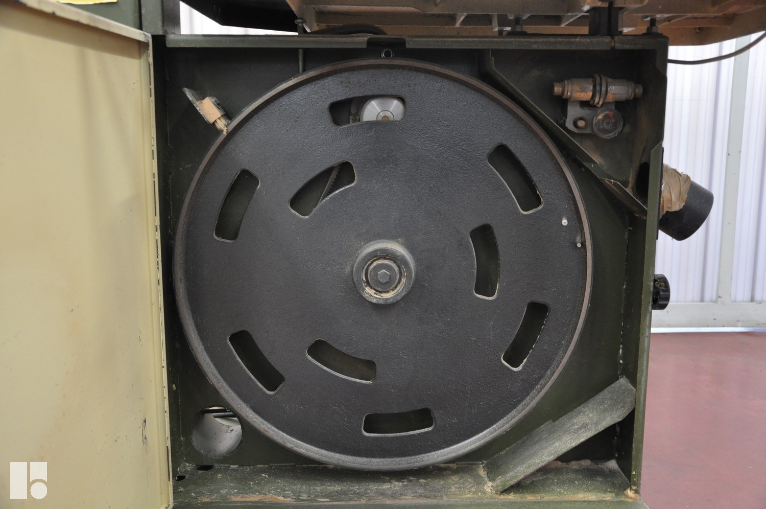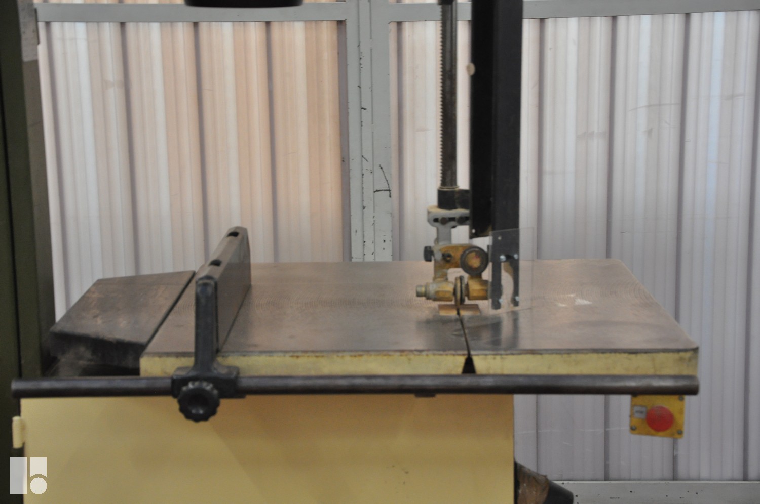 Sega con motore da 3 kW, lunghezza lama 5170 mm, diametro volano 700 mm, larghezza di taglio massima 650 mm e tavola rotante