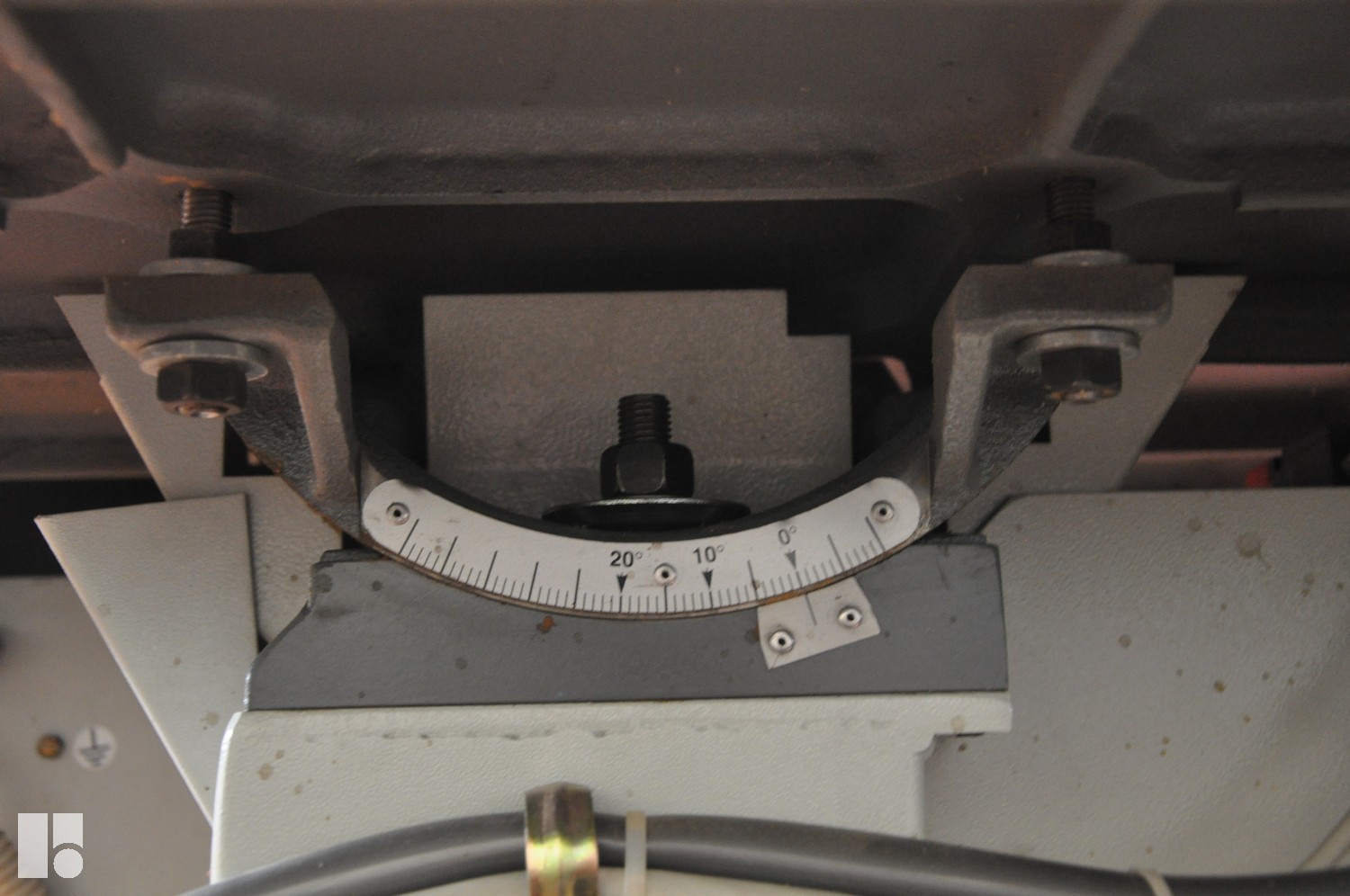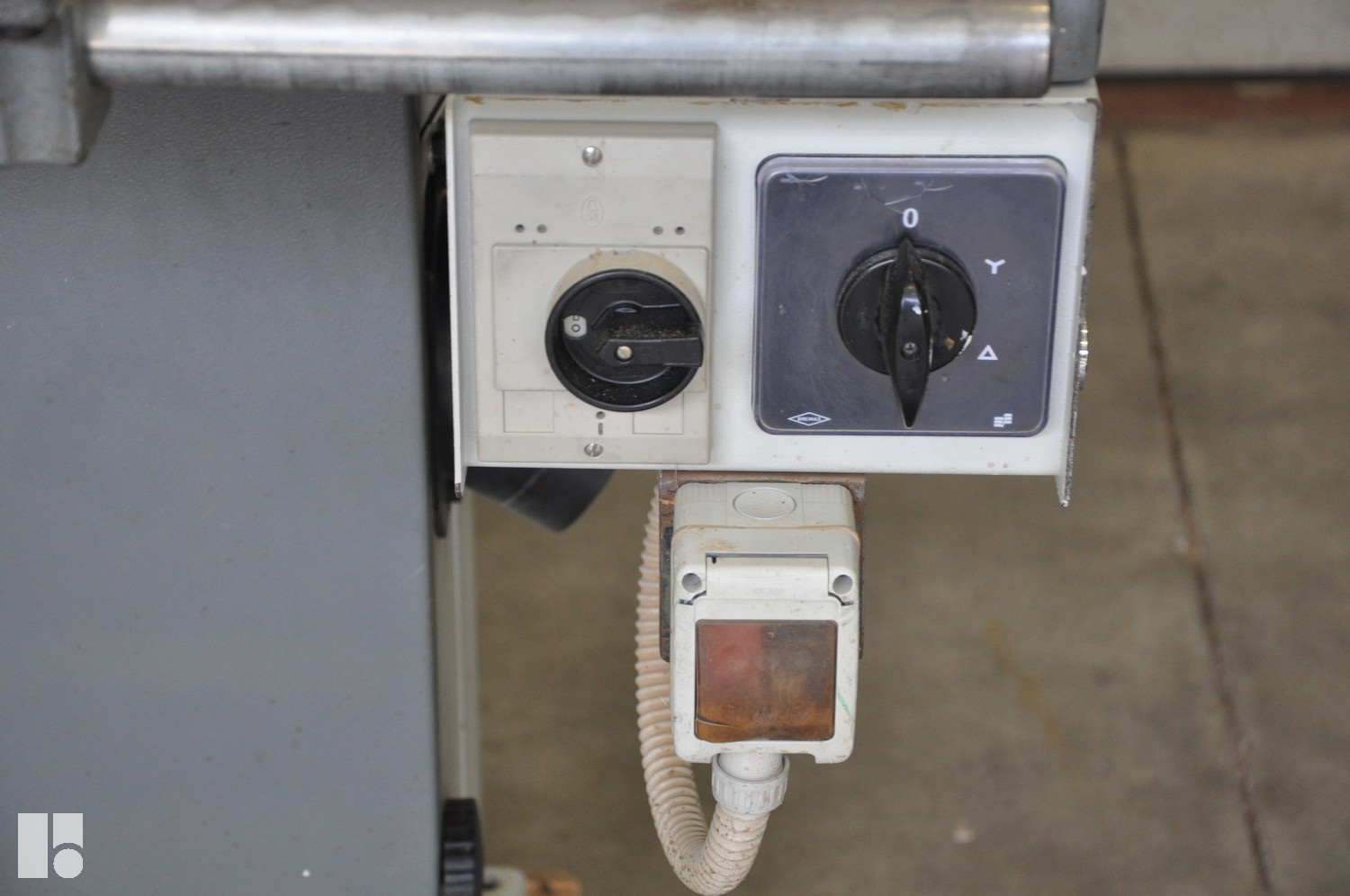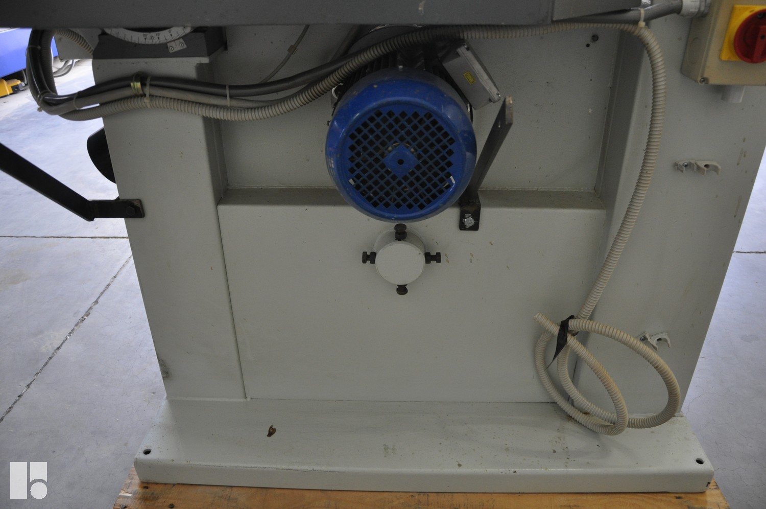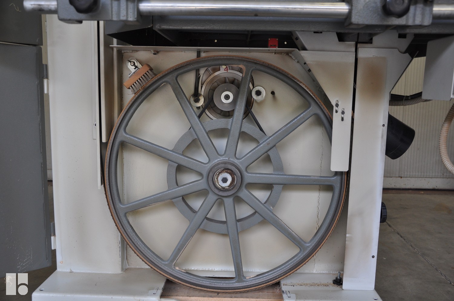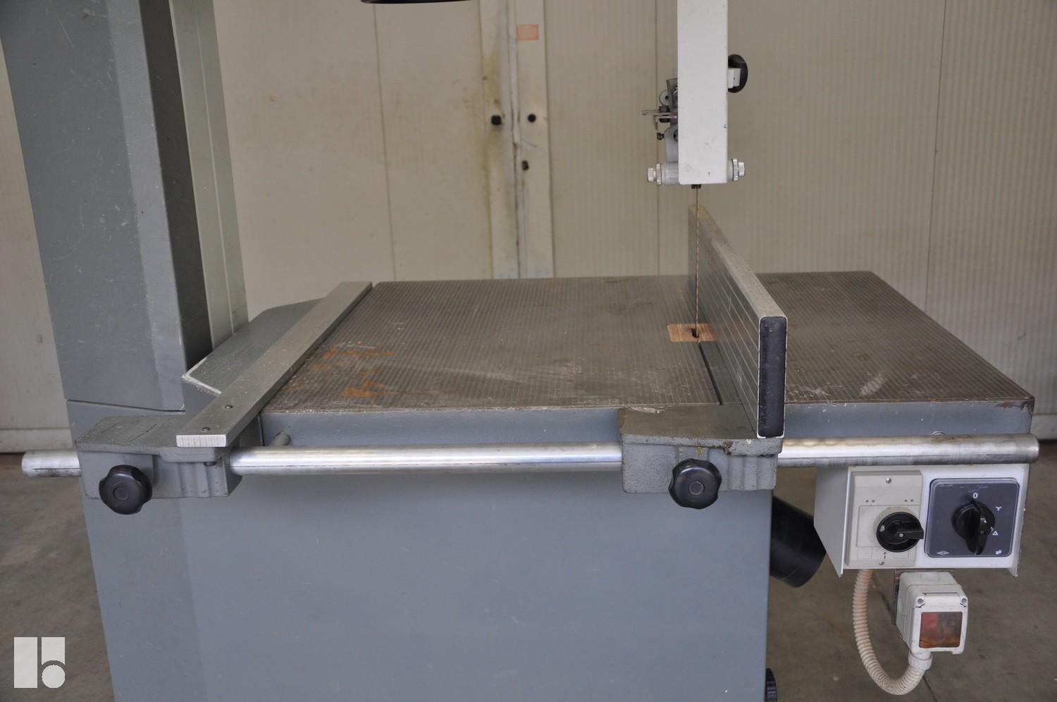 Sega con motore da 3 kW, lunghezza lama 5170 mm, diametro volano 700 mm, larghezza di taglio massima 650 mm e tavola rotante