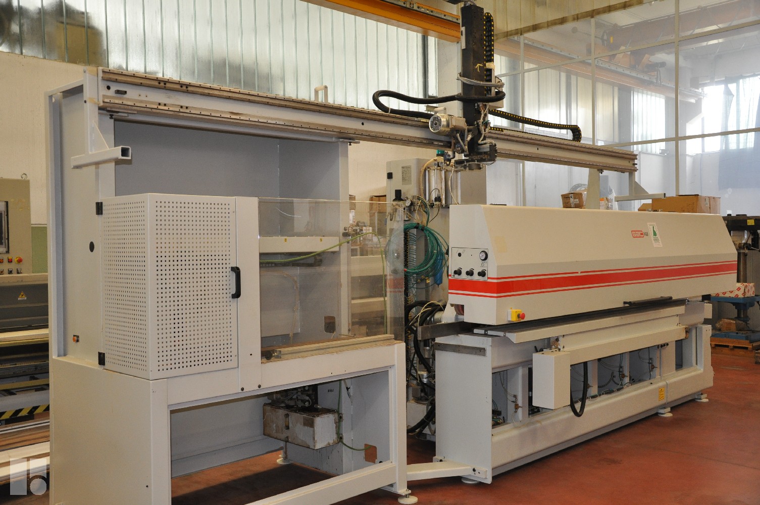 LATO A PROFILARE: piano con lubrificazione olio automatica e sistema scorrimento pezzo in profilatura, su velo d'aria.