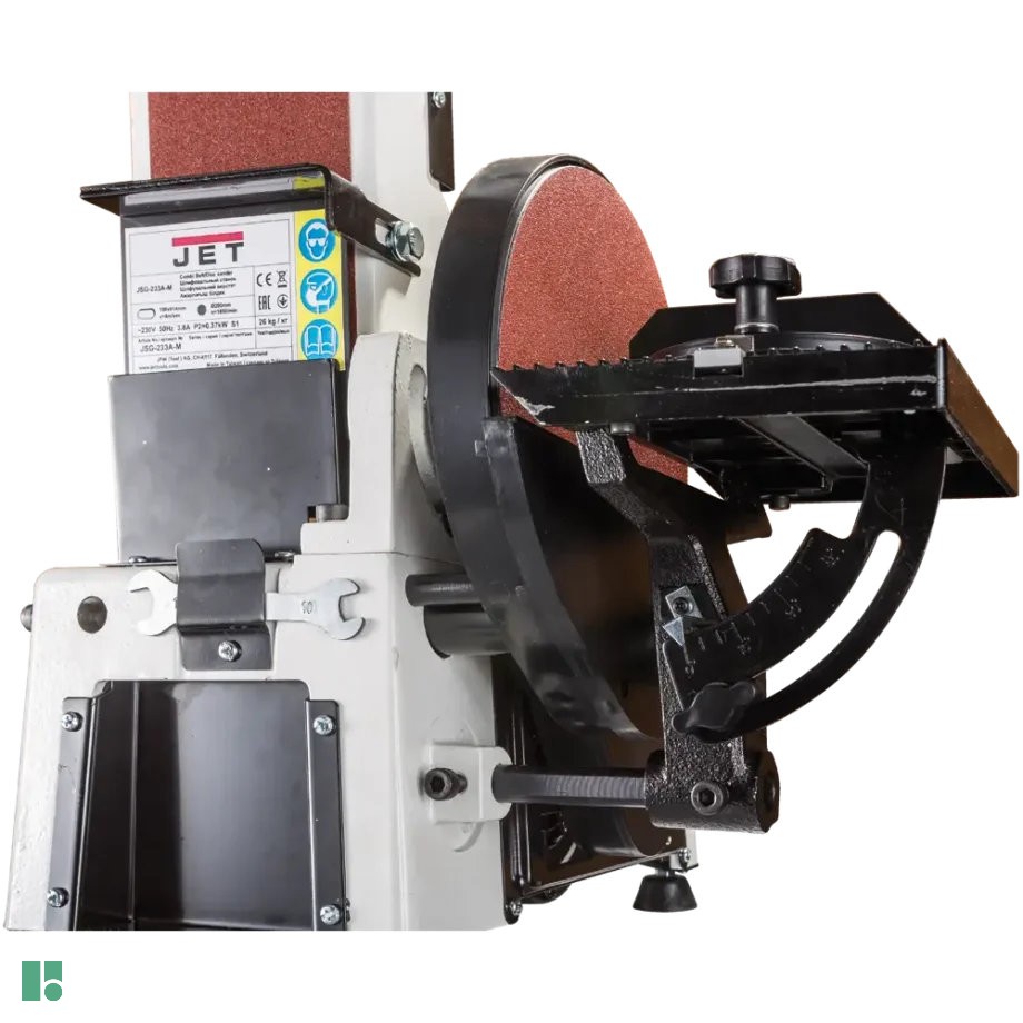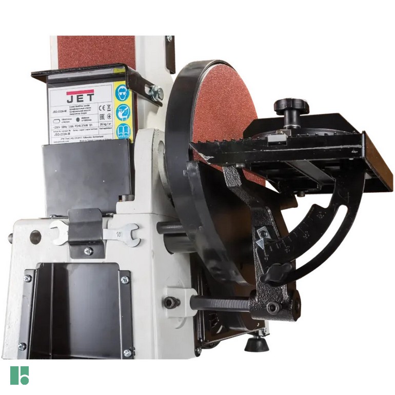 Jet JSG-233A è una levigatrice combinata da banco compatta dotata di un potente motore da 520 W, disco in velcro da 200 mm e nastro abrasivo inclinabile da 0 a 90° da 100 x 914 mm per varie applicazioni di levigatura.