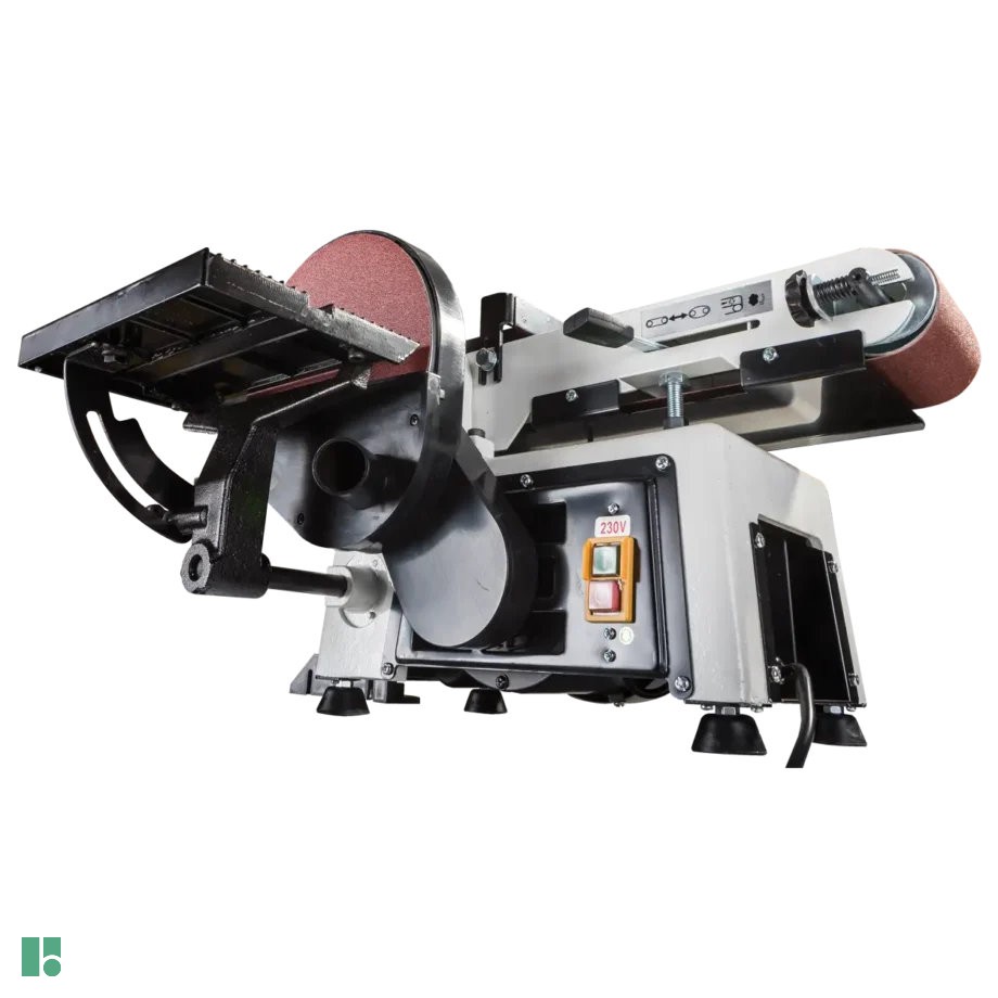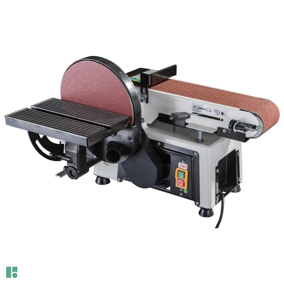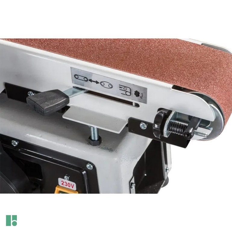 Nonostante le dimensioni compatte, la levigatrice è dotata di un robusto telaio in ghisa e di cuscinetti in gomma che aumentano la stabilità e contribuiscono a ridurre le vibrazioni. Il piano di lavoro è realizzato in alluminio pressofuso e può essere sostituito da disco a nastro in meno di 1 minuto.